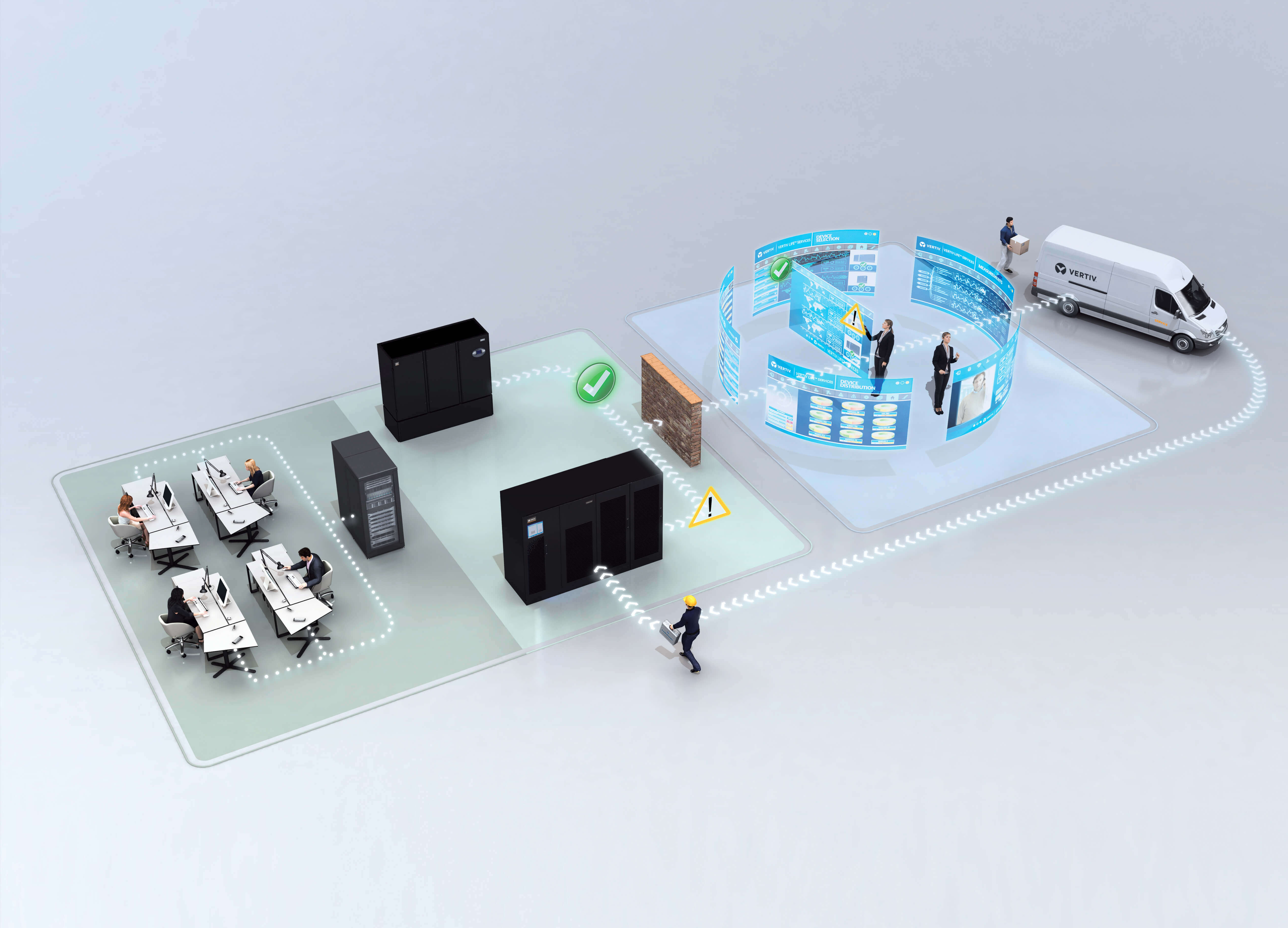 Vertiv LIFE Services provide real-time visibility into your critical systems, resulting in early detection of anomalies and immediate reaction in case of alarms. Adding in the diagnosis capability of remote system engineers allows our technicians to be armed to quickly, accurately, and safely restore equipment to its proper operating condition.