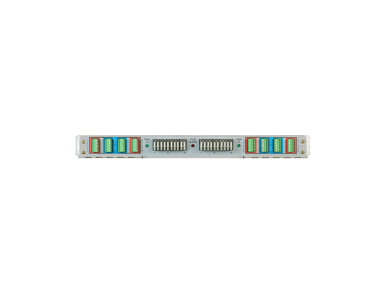 Accepts up to (20) separately ordered GMT fuses. May be connected for single load distribution or dual (A and B side) load distribution. Designed for mounting in a 19" or 23" relay rack. Includes an external fuse alarm circuit card which provides resistive battery and Form-C relay contacts for external alarm circuits.