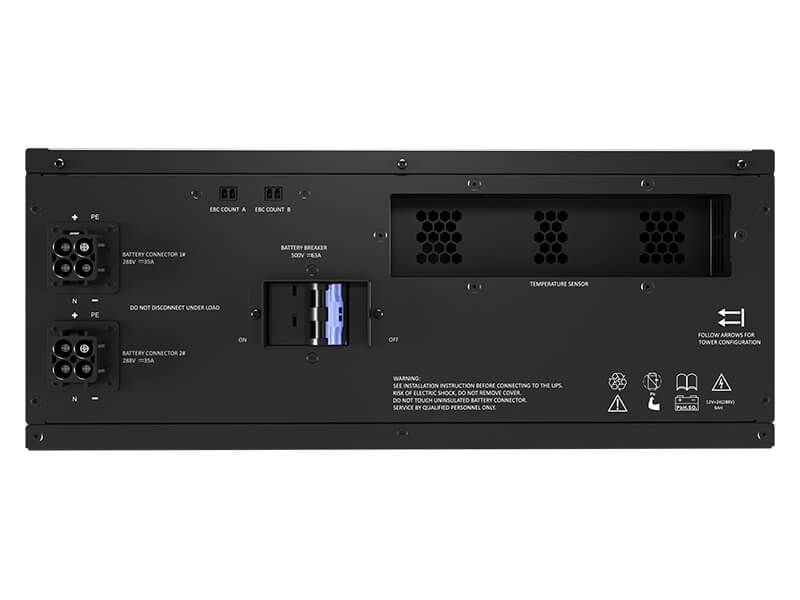 When longer runtime is desired, External Battery Cabinets (EBC) may be added to increase the runtime and availability of your connected devices. EBCs are auto detected so no user configuration is necessary.