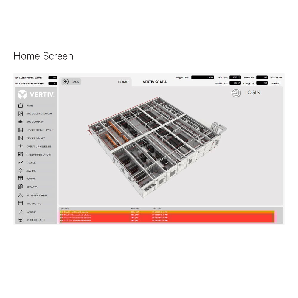 - REAL-TIME MONITORING: Achieve real-time onsite or remote monitoring and visualization of critical infrastructure with an optional SCADA-based Building Monitoring System (BMS).