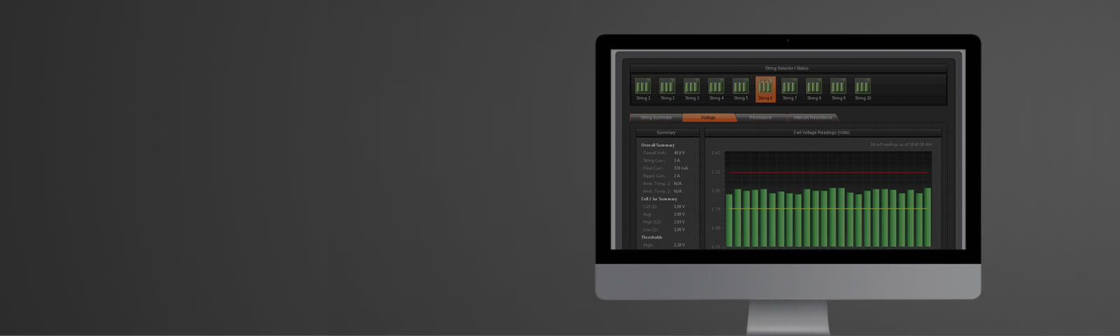 Albér™ software provides a single view of all Albér™ monitoring systems, batteries, and Lithium Ion battery racks.
