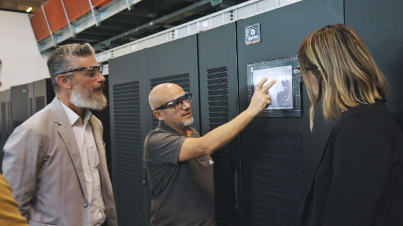 Vertiv™ 360AI solutions support network communications and software to provide centralized, remote visibility across the entire solution, with unmatched controls capabilities across power and cooling technologies.
