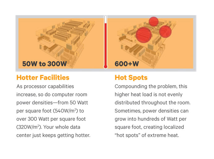 The Liebert DCD is a fanless heat exchanger module that installs as the rear door of an equipment rack. This chilled water-based system provides up to 50kW of room-neutral cooling. As many as ten Liebert DCD modules are connected to a single Liebert DCP coolant pumping unit, which acts as an isolating heat exchanger between the building chilled water source and the circulating cooling water.