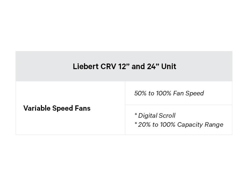 The Liebert CRV is a precision data center cooling solution providing temperature and humidity control. It integrates within a row of data center racks, providing cooling close to the heat load. The Liebert CRV used with Liebert Optimized Aisle Controls independently manages airflow and temperature, greatly improving efficiency and supporting higher rack densities. Adjustable airflow baffles allow you to more precisely direct airflow within the row. Liebert CRV uses environmentally-friendly R410A refrigerant. The system is available in two widths, 300mm and 600mm, and multiple capacities. It is available in systems for air, water/glycol, and chilled water cooling.