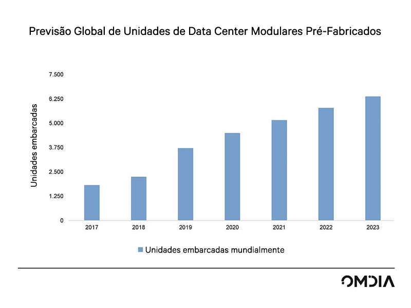 O relatório de pesquisa da Omdia intitulado Data Centers Modulares Pré-Fabricados, publicado no início de 2020 com base em dados de 2018 e 2019, avaliou os embarques de PFMs em mais de 1,2 bilhões de dólares em 2018 com o crescimento das implementações devendo aumentar em mais de 65% para 2019. O grupo analista atribuiu esse forte crescimento a vários fatores, incluindo a escalabilidade, os benefícios da fabricação e integração fora do site e a velocidade de implementação.